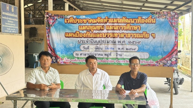 นายบัญชา สารรัตน์ นายกองค์การบริหารส่วนตำบลเมืองน้อย พร้อมด้วยคณะผู้บริหาร นายวสันต์ ผดุงกิจ ผู้อำนวยการโรงพยาบาลส่งเสริมสุขภาพตำบลบ้านเมืองน้อย หัวหน้าส่วนราชการ เจ้าหน้าที่องค์การบริหารส่วนตำบลเมืองน้อย เข้าร่วมโครงการประชาคมแผนพัฒนาท้องถิ่นแผนชุมชน แผนการศึกษา แผนป้องกันและบรรเทาสาธารณภัยฯ ประจำปีงบประมาณ พ.ศ.๒๕๖๙ เพื่อเป็นการแลกเปลี่ยนแนวคิดเพื่อให้ประชาชนได้เสนอความต้องการในการพัฒนาด้านต่างๆ ระหว่างวันที่ ๒๐ มีนาคม ถึง วันที่ ๓๑ มีนาคม ๒๕๖๙ ณ ศาลาประชาคมตำบลเมืองน้อย ตำบลเมืองน้อย อำเภอธวัชบุรี จังหวัดร้อยเอ็ด